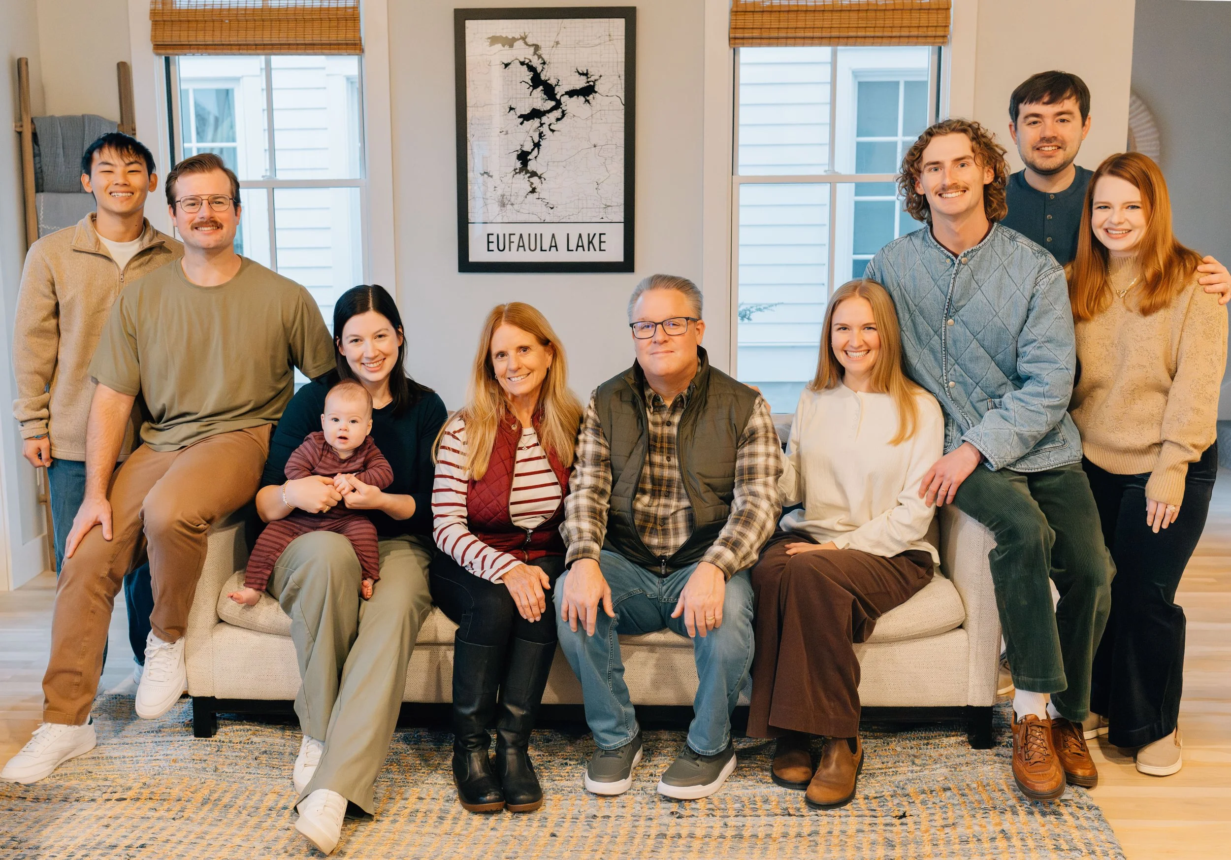 This extended family session took place just after Christmas when a Texas family who is now spread out across several states gathered for a winter weekend at Carlton Landing. I photograph a lot of summer sessions at Lake Eufaula, often involving boats, docks, and lake days. Getting to experience this place in the winter was such a refreshing twist and honestly made me fall in love with it all over again.