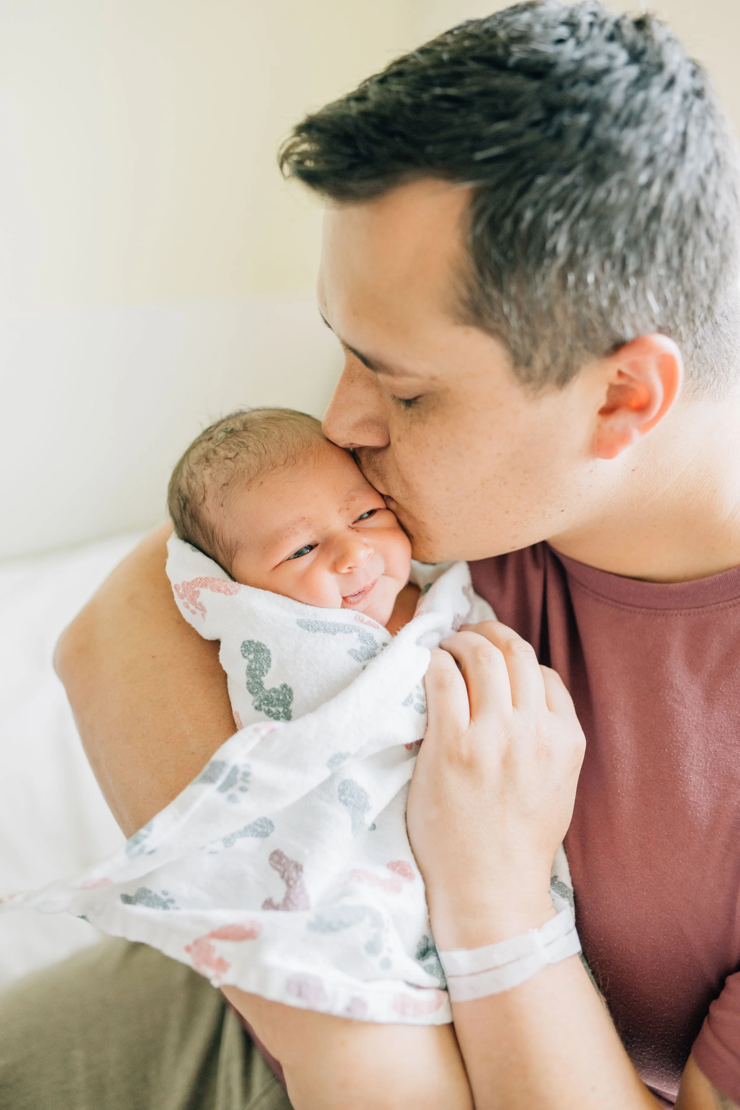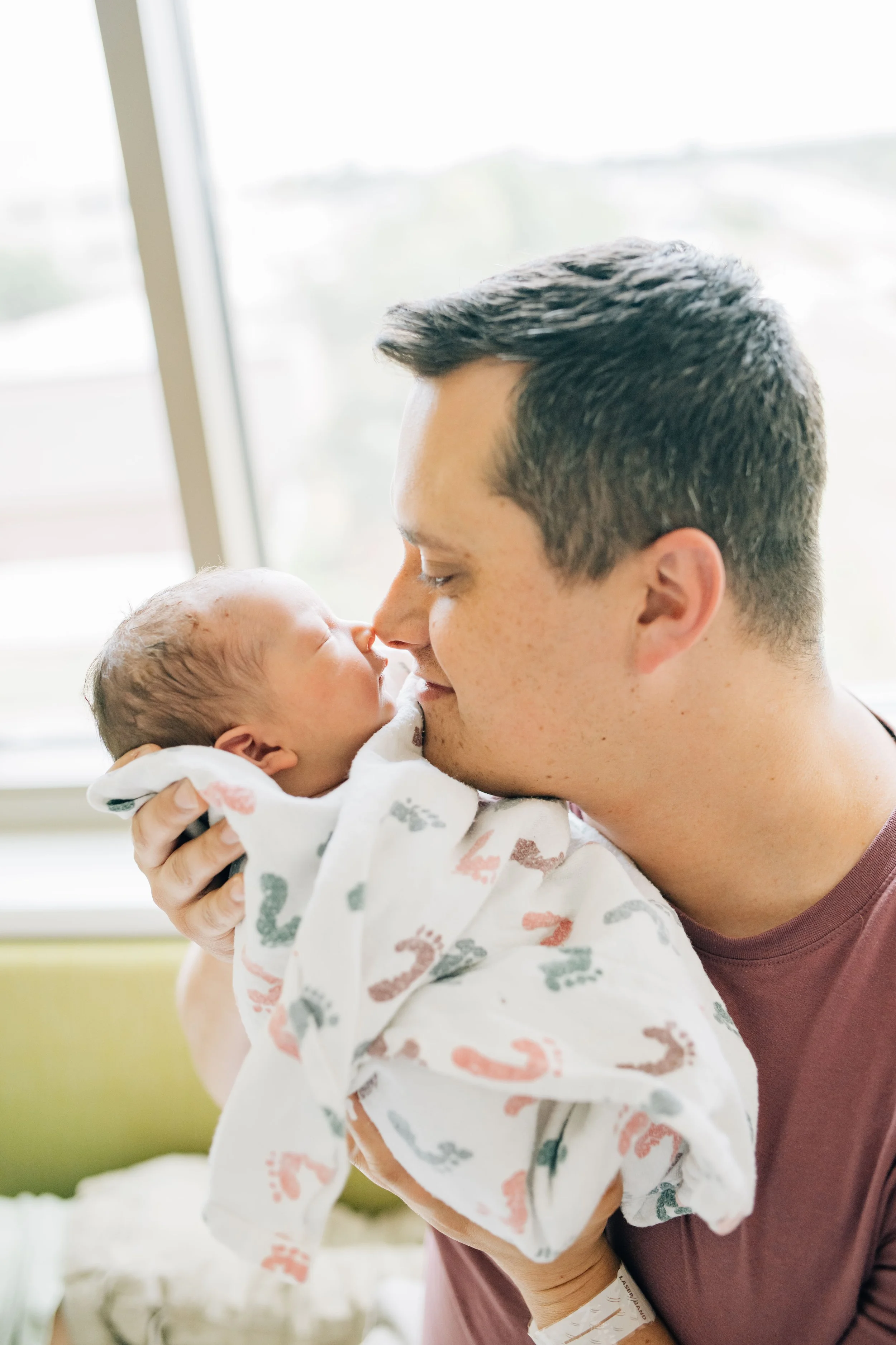 Preparation for a Fresh 48 session is simple. You don’t need to worry about outfits or styling your hospital room. (Though lots of moms love to grab a matching robe and onesie for fun!) Neutral swaddles, a simple blanket, and your everyday selves are more than enough. The focus is on capturing genuine moments of love and connection. I encourage parents to pack a favorite swaddle or outfit for the baby, but comfort always comes first. Keep parents outfits comfortable and neutral so the focus stays on the connection and your new bundle of joy! A little window light, a cozy space, and your family’s love is all we need.